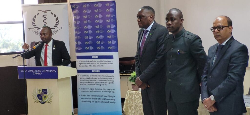 A moment signifying not just the completion of the academic journey, but the beginning of the professional and societal contributions as graduates of Texila American University, with distinguished guests, Guest of Honour Dr. Kennedy Lishimpi the Permanent Secretary for Technical Services at the Ministry of Health (MOH), Deputy Vice Chancellor (Academics) Dr. Balamurugan Easwaran, Brig. Gen. Prof. Lawson Simapuka the Executive Director of the National Forensic Authority, Dr. Masiku Phiri the President of the Zambia Medical Association (ZMA), and Dr. Innocent Ngwira the Secretary General, of ZMA.