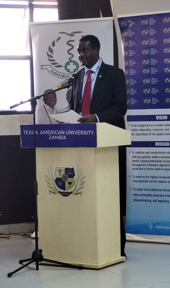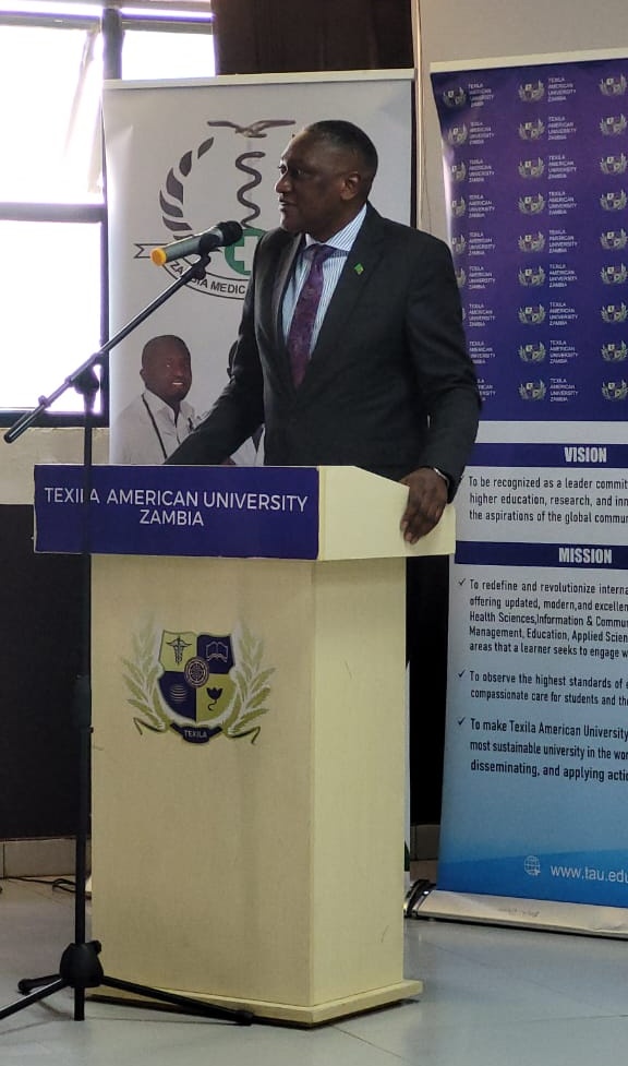 The Guest of Honour Dr. Kennedy Lishimpi highlighted the Ministry of Health’s recognition of Texila American University Zambia’s role in building a strong, ethical health workforce for Zambia and the global community. Dr. Lishimpi emphasized that while the healthcare environment is rapidly changing with new technologies, diseases, and population needs, the core medical values; respect for human dignity, compassion, confidentiality, professionalism, and ethical practice remain unchanged. He noted that the inductees will face resource‑limited, demanding communities that test their character and commitment, so they must stay grounded and guided by their professional oath.